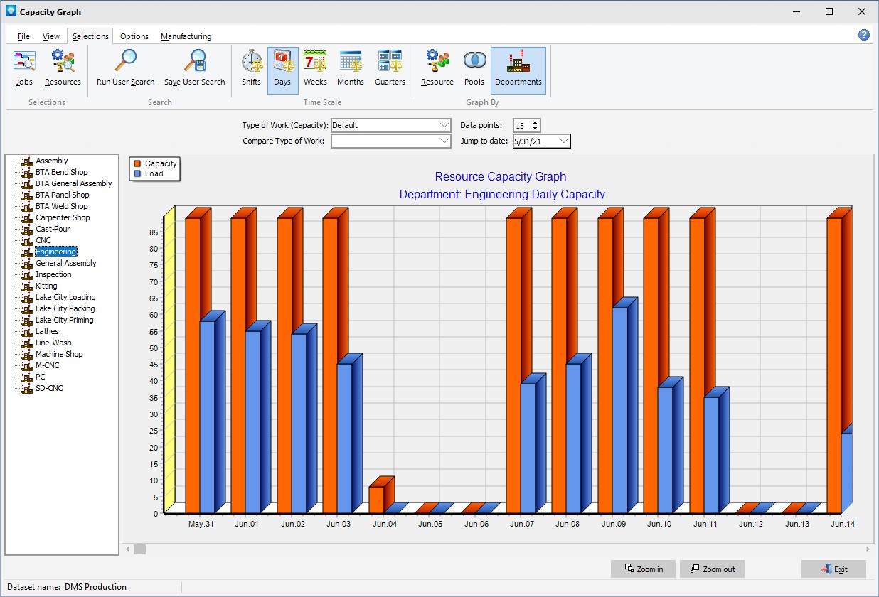 8.Graph by Departments Select Selections | Graph by Departments to display the capacity graph by department.