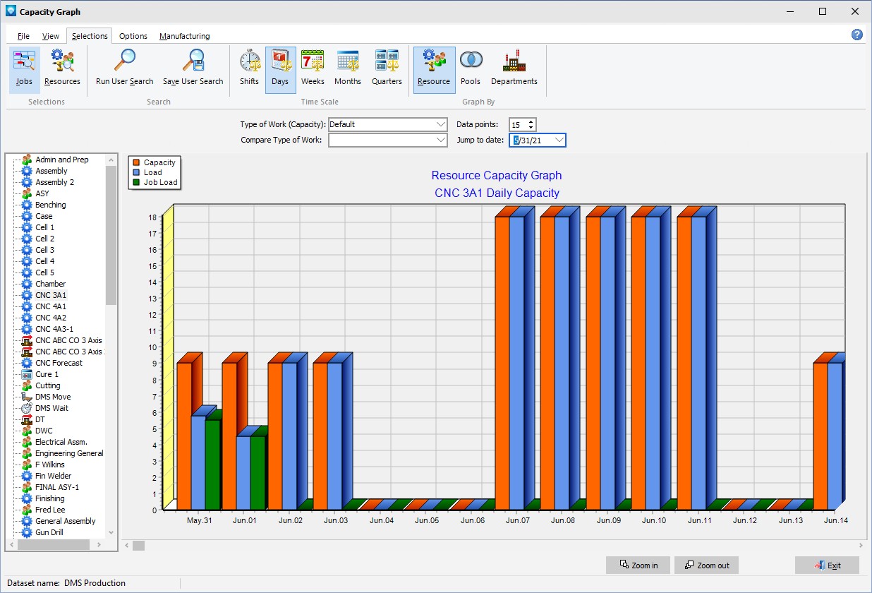 4.Jump to Date The Jump to Date allows you to enter a date and have the Capacity Graph jump to that date and display the load on that day.