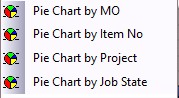 The Capacity Graph has a command where if you right click on a bar, the following popup menu appears enabling you to select a Capacity Pie Chart showing the hourly load by jobs, job identification, part number or job state. Once the pie chart has been displayed, you can switch between any of the four views: