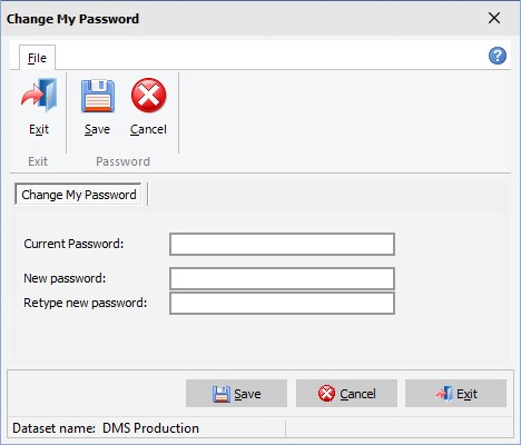 Change My Password enables a user to change their password. The user must be given permission to change their password in the associated user group (i.e. User Groups).